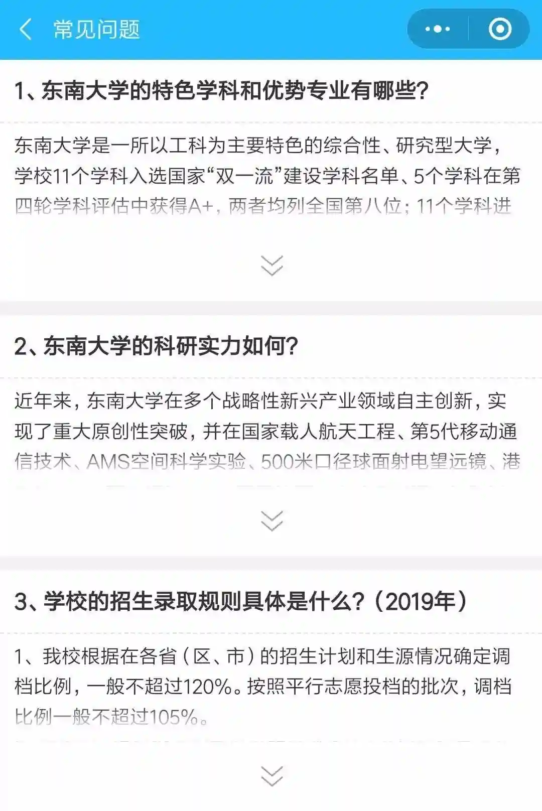 “东南大学本科招生系统”小程序