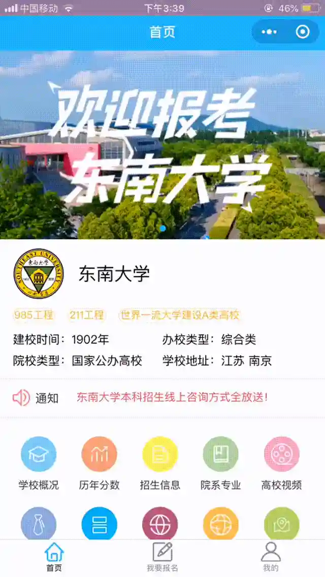 东南大学小程序给你最新招生简章