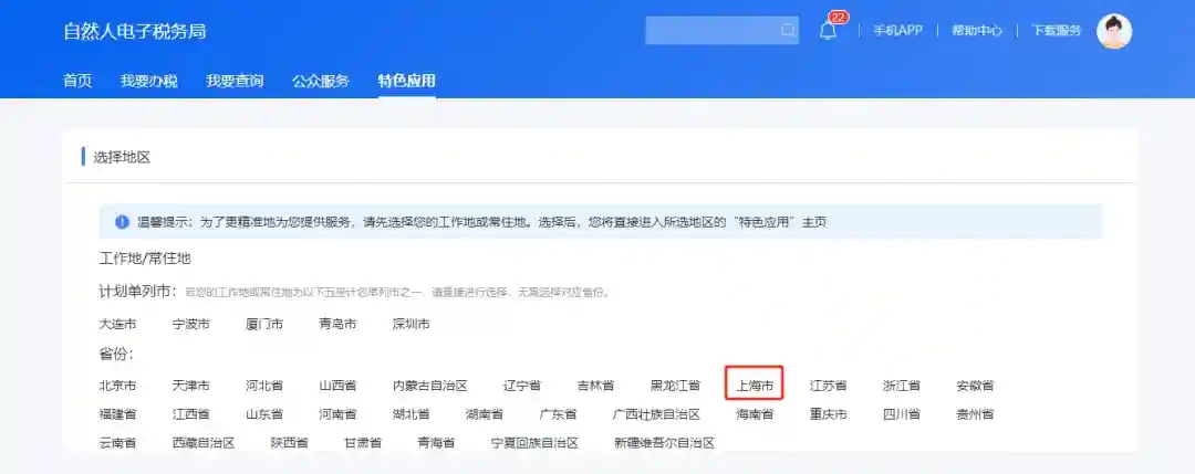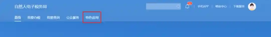 登录后,选择页面上方菜单栏的“特色应用”。