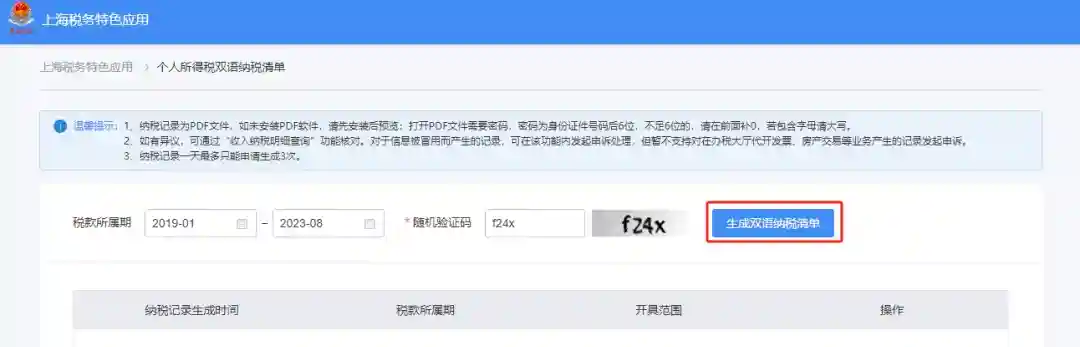 输入密码后,即可获取个税双语纳税清单内容。