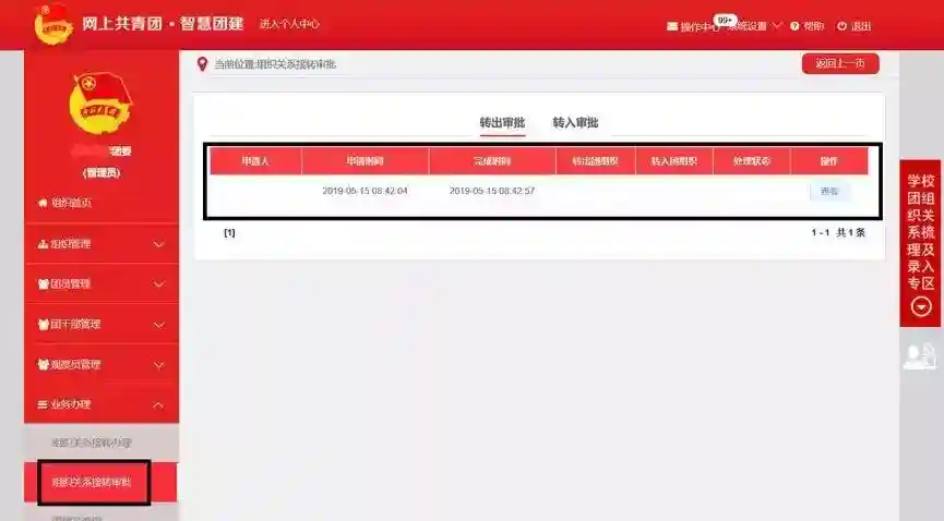 3、转出团组织管理员审批