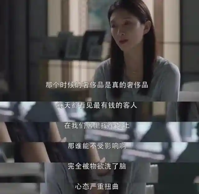 尽管她也只是每天帮贵妇提鞋的柜姐,谁也没比谁金贵到哪去。可悲的是,王漫妮还没过上富人的生活,却沾染上了富人的病……就连她自己也说,完全被物欲洗了脑,心态严重扭曲。