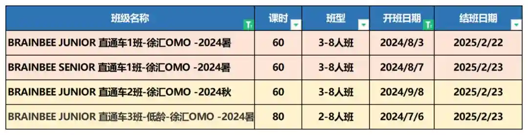 BrainBee培训课程安排